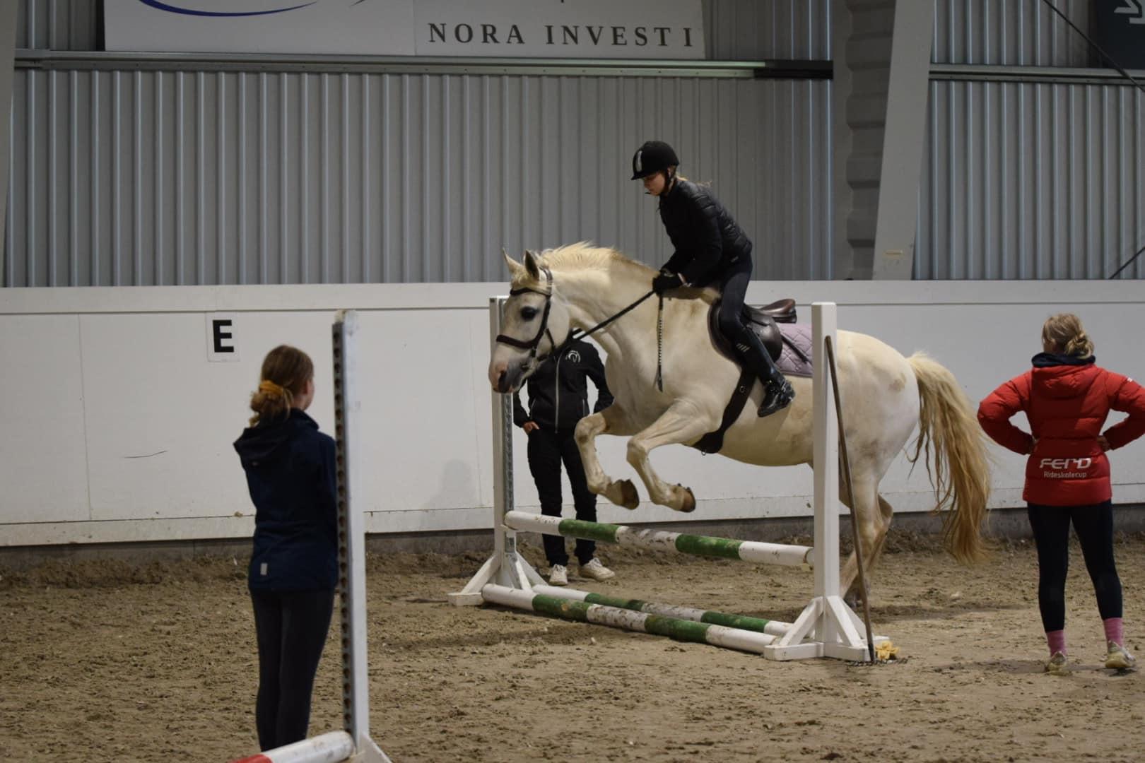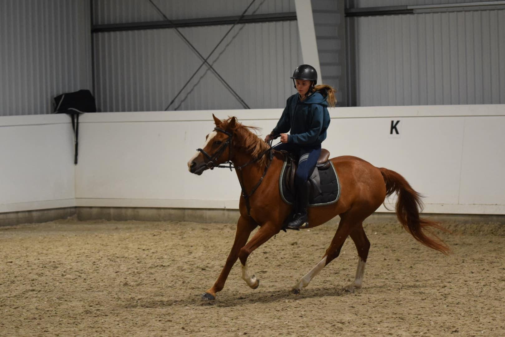 Vi deler deltakerne inn i grupper etter nivå. Alle får ri to ganger om dagen – en time på formiddagen og en på ettermiddagen. Vi har fokus på både dressur, sprang, turridning og leker til hest.