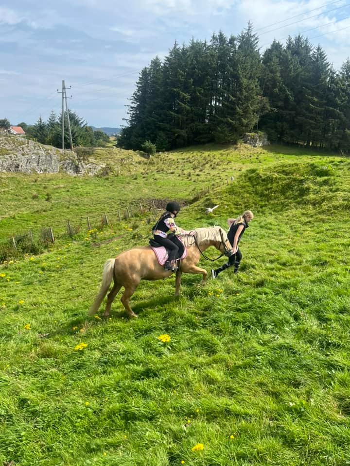 Du får også lære å stelle hesten, sale av og på, fletting, stallarbeid, foring og alt som hører med å ha en hest!